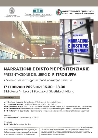 [Area] NARRAZIONI E DISTOPIE PENITENZIARIE – Presentazione del libro di Pietro Buffa - 17 febbraio 2025 ore 15.30, Biblioteca Ambrosoli, Palazzo di Giustizia di Milano