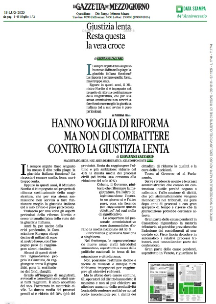 [Area] AreaDG - Zaccaro 'Hanno voglia di riforma ma non ci combattere contro la giustizia lenta'