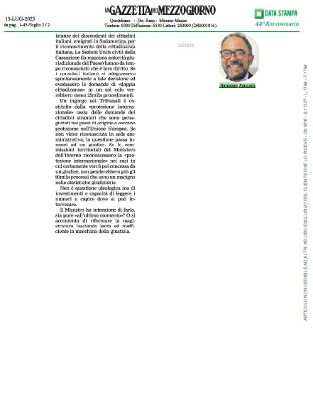 Zaccaro a *La Gazzetta del Mezzogiorno:*