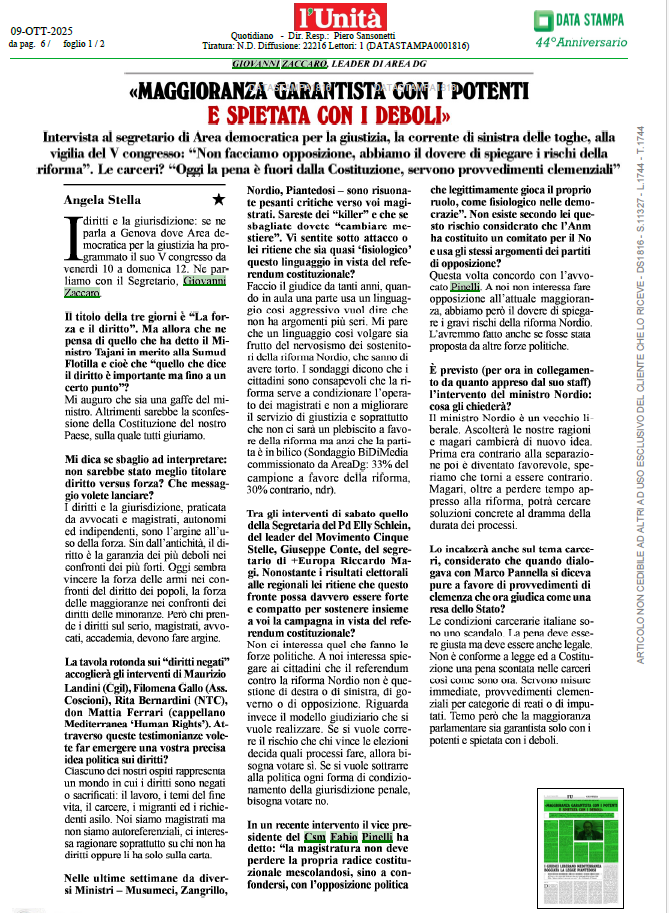 [Area] AreaDG - Zaccaro su L'UNITA'